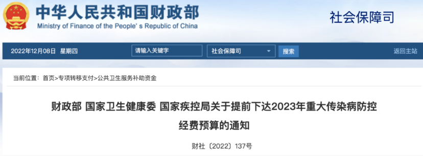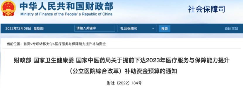 2022年12月,財(cái)政部提前下達(dá)2023年國家醫(yī)療衛(wèi)生領(lǐng)域相關(guān)投資預(yù)算的通知,總計(jì)超600億。