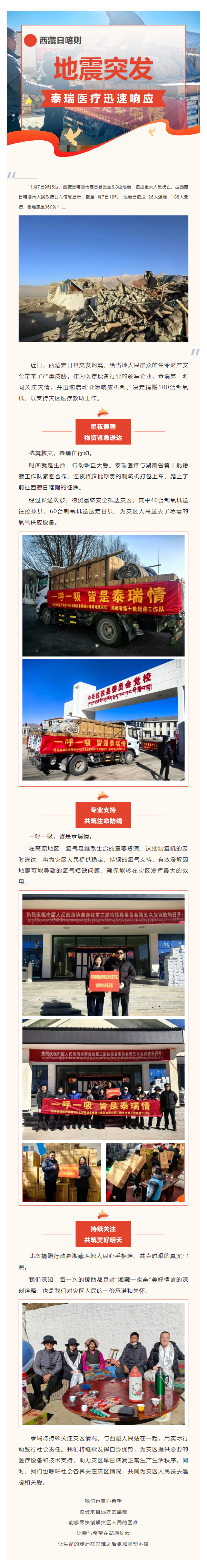 西藏地震牽動人心,泰瑞醫(yī)療緊急捐贈百臺制氧機