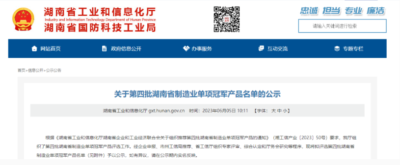 制造業(yè)單項冠軍被譽為制造業(yè)皇冠上的“明珠”、金字塔的“塔尖”,是行業(yè)關(guān)鍵技術(shù)“攻堅者”。湖南省制造業(yè)單項冠軍產(chǎn)品認(rèn)定要求企業(yè)長期專注于細(xì)分產(chǎn)品市場,單項產(chǎn)品的細(xì)分市場占有率位居全國前3且省內(nèi)排名第1,企業(yè)的生產(chǎn)技術(shù)、工藝國內(nèi)領(lǐng)先,具備自主研發(fā)能力,擁有較高的智能制造水平和較強的持續(xù)創(chuàng)新能力。