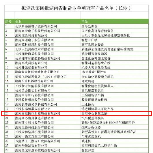 日前,泰瑞“醫(yī)用中心制氧系統(tǒng)”憑借先進(jìn)的創(chuàng)新實力以及在制氧細(xì)分領(lǐng)域市場占有率位居榜首的市場實力,通過層層推薦和專家組綜合評審,從眾多企業(yè)中脫穎而出,成功入選湖南省制造業(yè)單項冠軍產(chǎn)品。