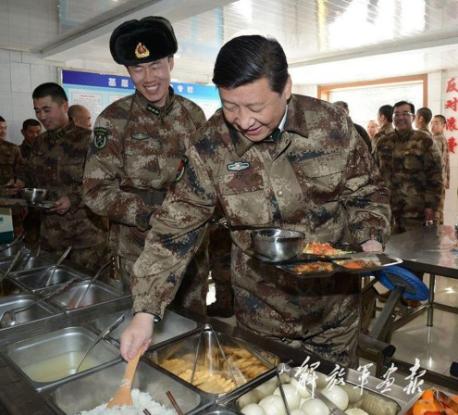 不知不覺午飯時間到了,習(xí)近平來到連隊(duì)食堂,同官兵一樣拿起餐盤,在自助餐菜臺上打好飯菜,同戰(zhàn)士們一起用餐。他邊吃邊同戰(zhàn)士們拉起了家常。習(xí)近平聽到戰(zhàn)士們到部隊(duì)后都有了很大進(jìn)步,感到十分欣慰。室外冰天雪地,屋內(nèi)暖意融融,戰(zhàn)士們臉龐涌現(xiàn)出發(fā)自內(nèi)心的喜悅和幸福。離開食堂時,習(xí)近平夸獎連隊(duì)的伙食很好。他語重心長地對炊事班的戰(zhàn)士說,希望你們不斷提高廚藝,讓執(zhí)勤歸來的戰(zhàn)友能吃上可口的飯菜。